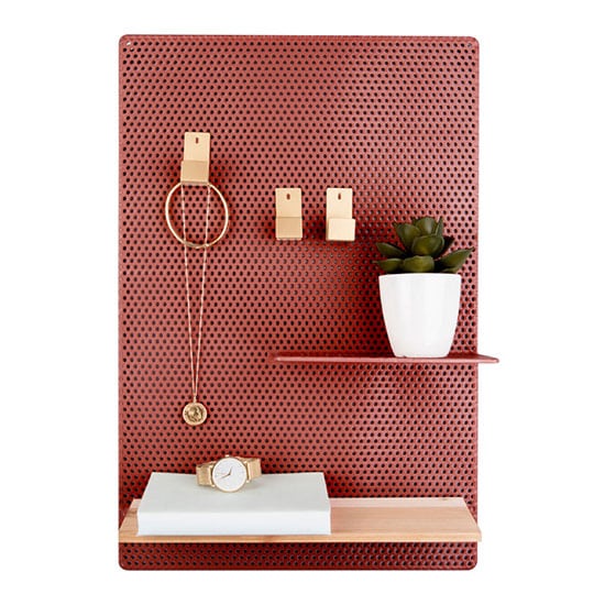 Description : Cet organisateur en métal perforé avec étagères et crochets est tout autant fonctionnel que design !