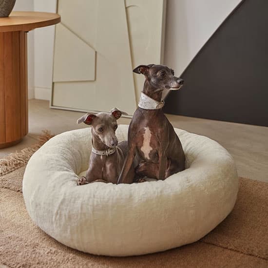 L’épaisseur généreuse et le tissu en fausse fourrure de ce coussin rond offriront à votre chien un confort absolu.