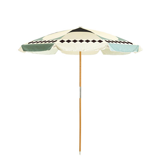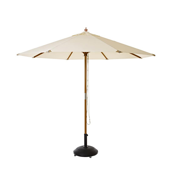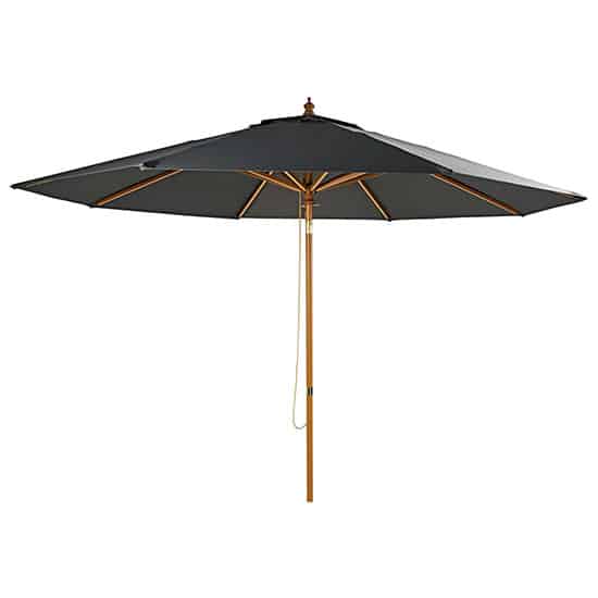 Ce parasol droit muni d’un mât en bois est livré avec sa housse de transport.