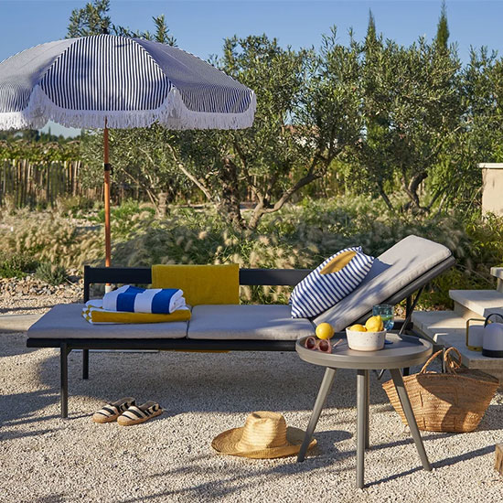Au jardin ou sur le balcon, il se mariera à merveille avec un transat en bois.
