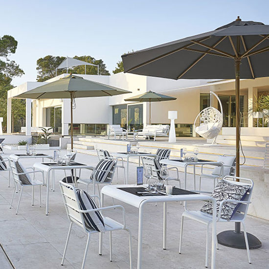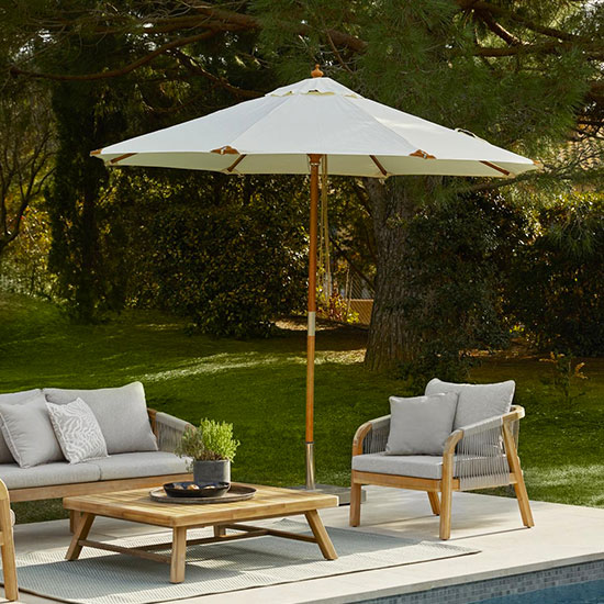 Avec sa silhouette élancée, ce parasol rond et droit ne manque pas d’allure.