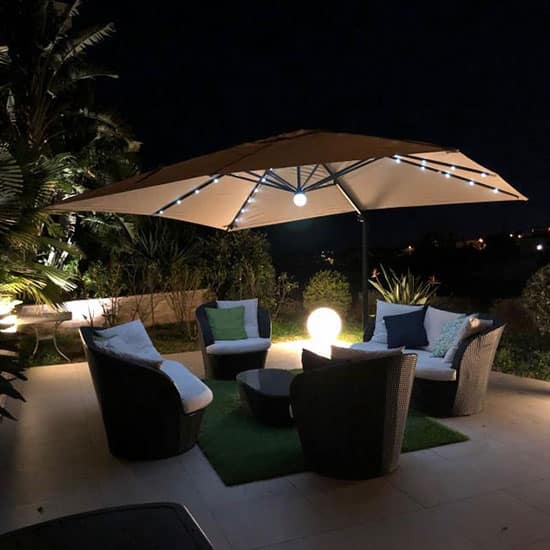 Ce grand modèle, disponible en plusieurs couleurs, rassemble tous les critères pour profiter de jour comme de nuit de votre extérieur !