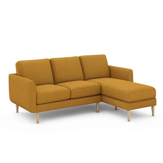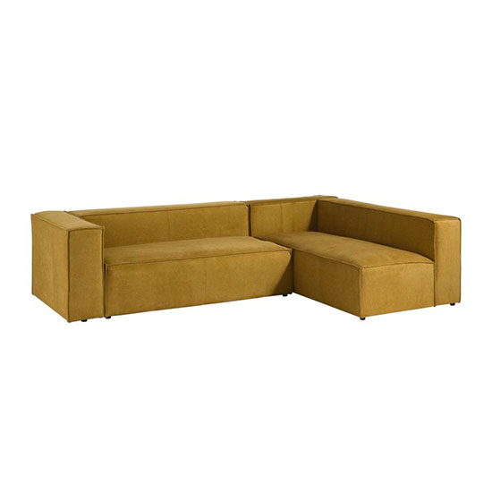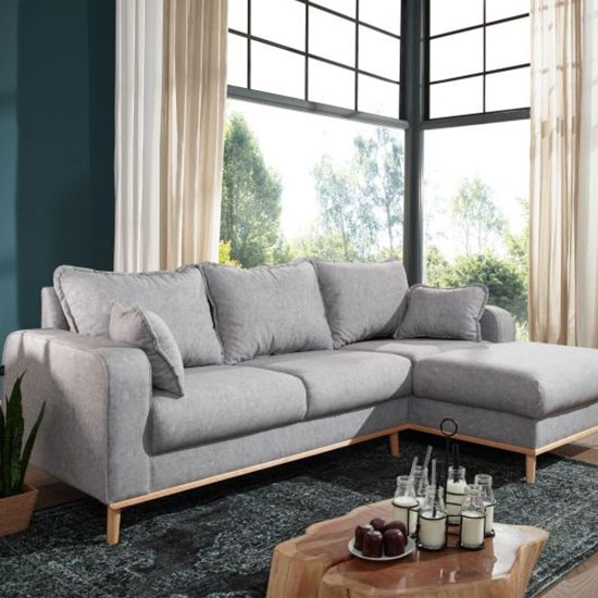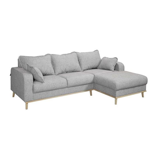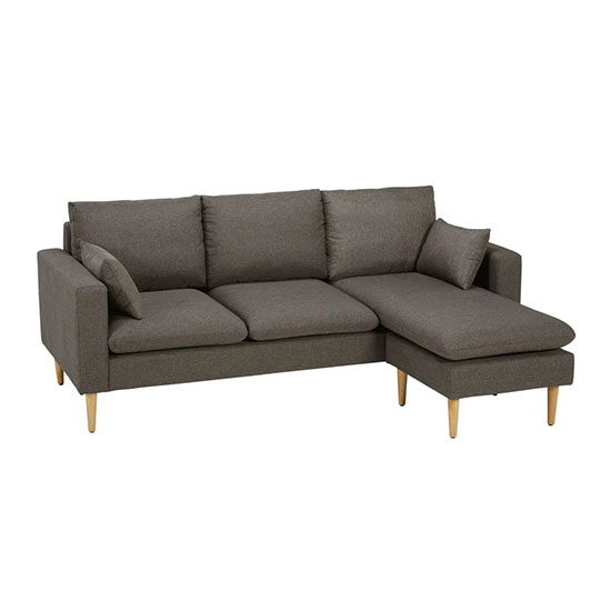 D’inspiration scandinave, cet élégant canapé d’angle en tissu s’élève sur 4 pieds fuselés en bois d’hévéa.