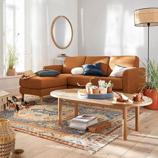Il s’accompagnera par exemple à merveille d’une table basse en bois et d’un tapis en jute.