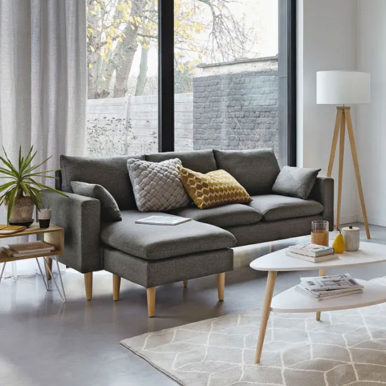 Assorti à une table basse scandinave, ce petit canapé d’angle sera la star d’un salon épuré et chaleureux.
