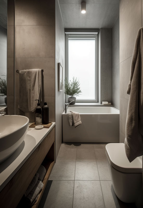 Les meubles peu profonds, tels que les lavabos étroits ou les armoires à faible profondeur, offrent des solutions pratiques de rangement sans encombrer l’espace.