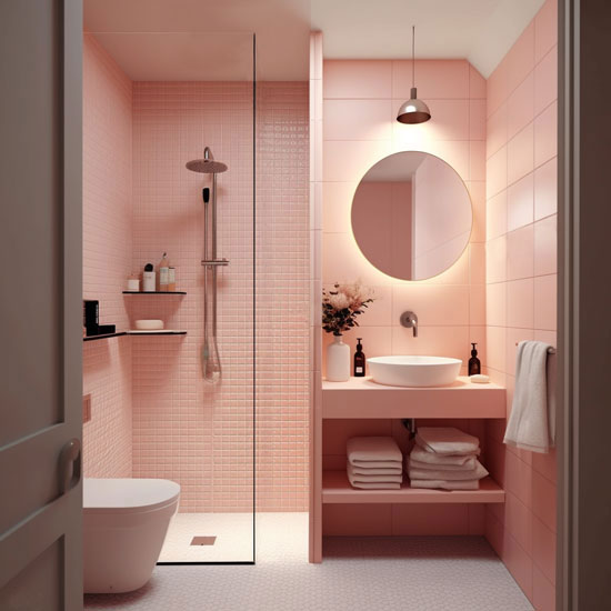 Utilisez des couleurs claires ou pastels comme le lin, le vert d’eau ou le bleu glacier, pour les murs et le sol afin de créer une impression d’ouverture.