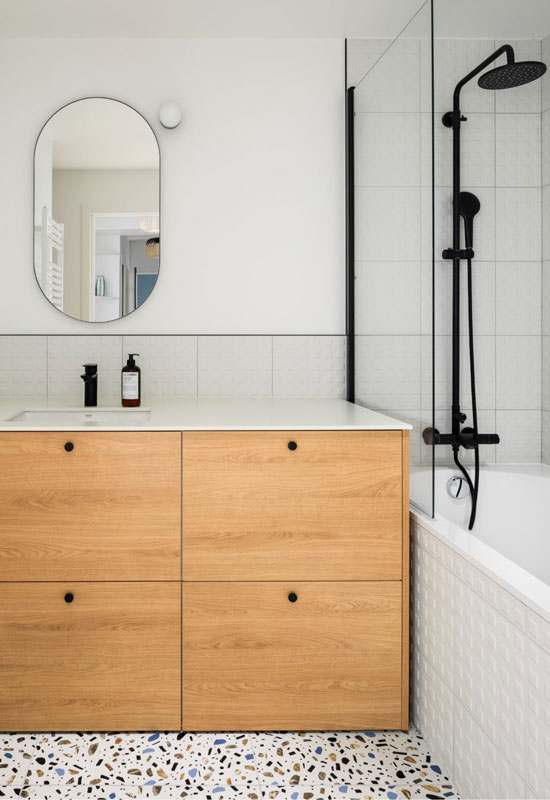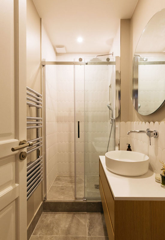 - Utilisez une paroi de douche transparente pour éviter de cloisonner l’espace visuellement.