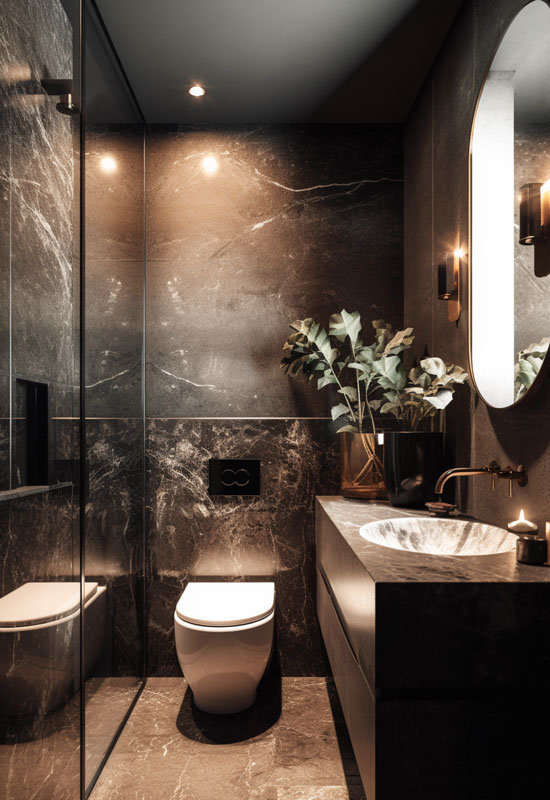 Pour ajouter une touche de sophistication et de chic à votre petite salle de bain, intégrez du marbre.