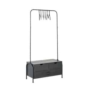 Description : Ce portant au style indus' grâce à ses finitions en métal vieilli offre un gain de place optimal avec ses tiroirs et ses cintres.