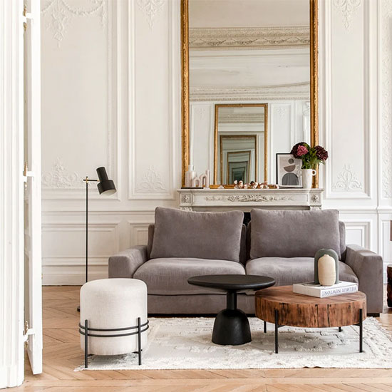 N’hésitez pas à l’associer à un canapé en velours côtelé gris ou beige pour une totale déco velours, tendance et ultra confortable.