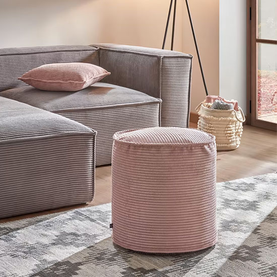 Ce petit pouf arrondi et revêtu de velours côtelé est celui qu’il vous faut !