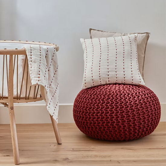 Cet adorable pouf rond prendra peu de place sans pour autant passer inaperçu avec son revêtement 100 % coton et sa couleur terracotta.