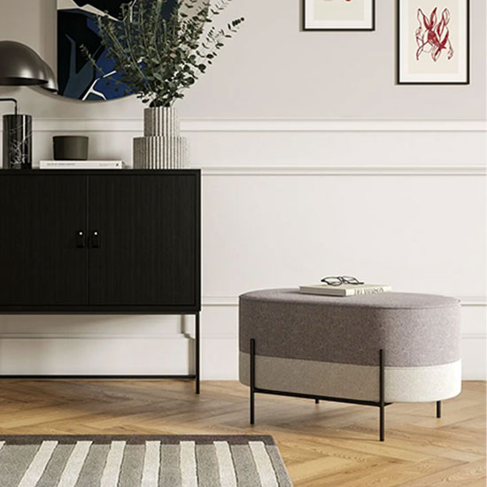 Voici un joli pouf ovale d’inspiration nordique, aux couleurs douces et au design raffiné.
