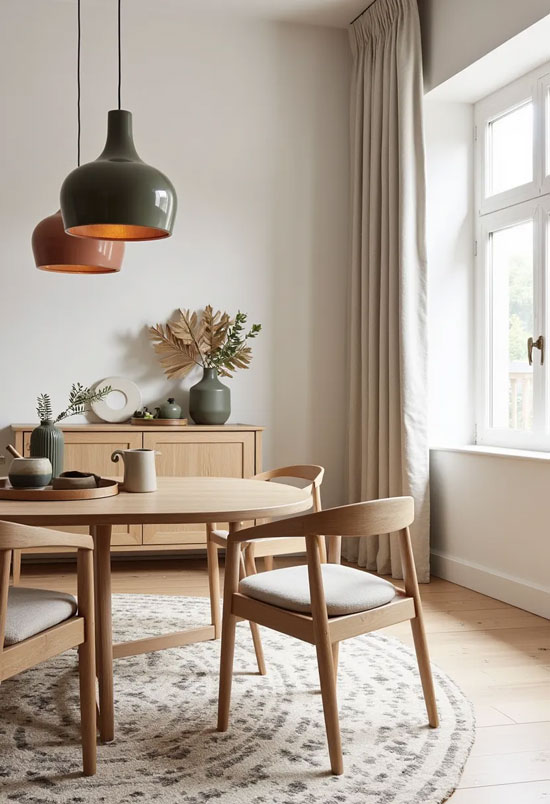 Dans une salle à manger scandinave, l’éclairage est essentiel.