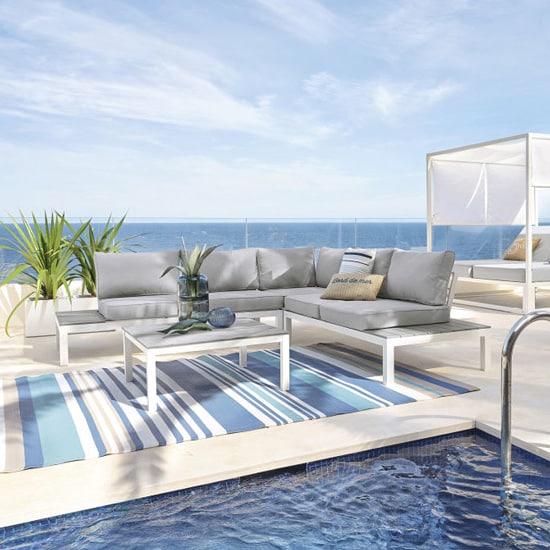 N’oublions pas la table basse assortie, indispensable pour poser quelques cocktails rafraîchissants.