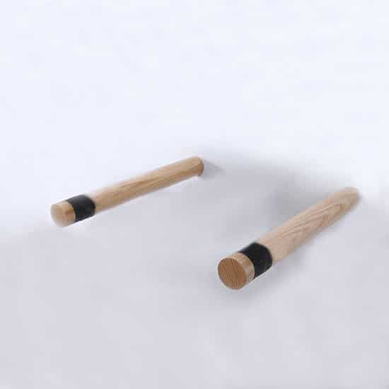 Deux cylindres muraux en bois de frêne soutiennent votre vélo, sans dépasser 16 kg de charge.