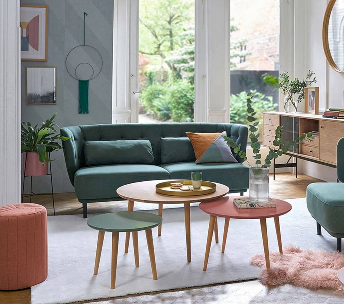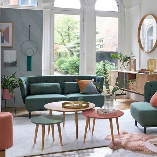 Donnez du peps et du volume à votre salon, en combinant des tables basses rondes de différentes couleurs et dimensions, de quoi décupler en un rien de temps la surface pratique.