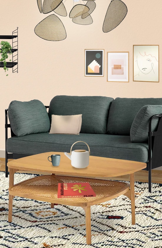 Tapis berbère, coussins tissés ou plaid grosse maille l’accompagneront avec équilibre grâce à leur charme artisanal.