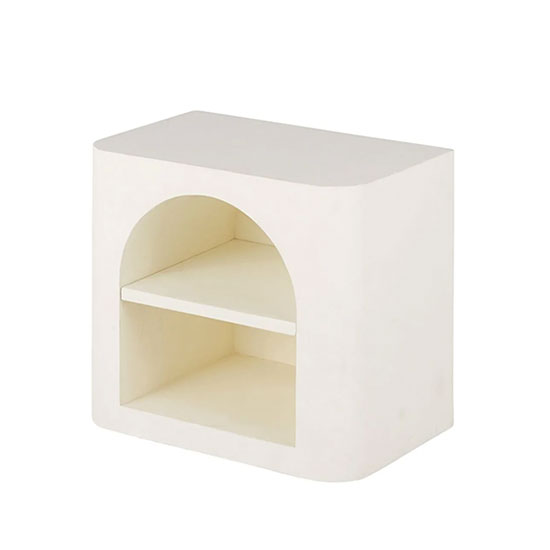 Dans une décoration de chambre cocooning ou minimaliste, ce meuble de chevet à la fois doux et architectural sera parfait !