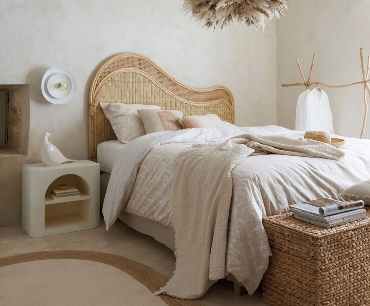 Pour une ambiance cosy, associez-la à des tissus chaleureux, à une tête de lit en rotin ou à des éléments déco issus de la nature.