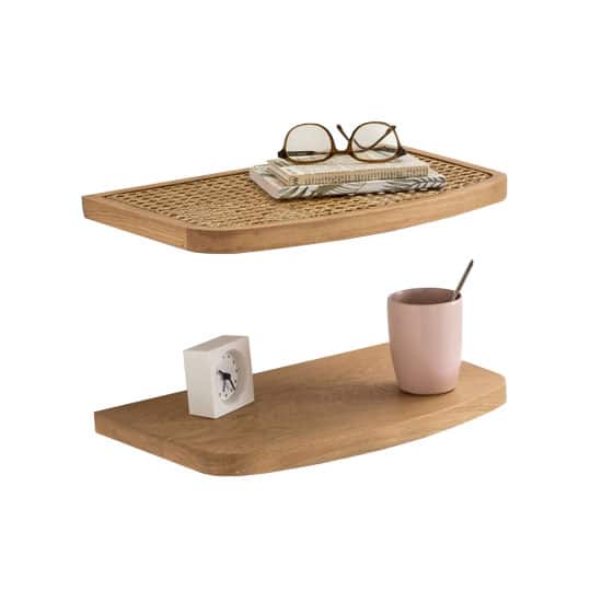 Le modèle Buisseau issu de La Redoute Intérieurs remplit ses deux rôles avec brio, avec deux tablettes en chêne et rotin, et un placement libre, à la hauteur souhaité, pour un rangement personnalisé
