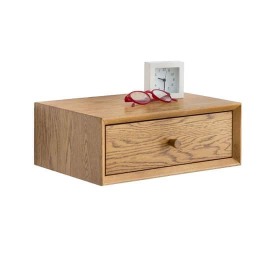 Un petit meuble de rangement des plus pratiques pour la chambre à coucher, pour y déposer lampe de chevet, livres et un tiroir de rangement qui vient en renfort pour encore plus de praticité au quotidien.