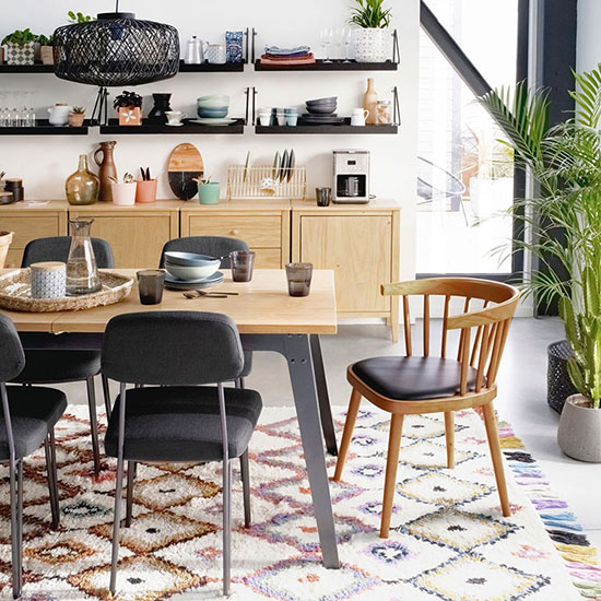En atteste la table Alfred signée Maisons du Monde, au plateau en bois de manguier à la finition grisée très tendance.