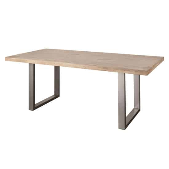 07 | Table en bois blanchi et pieds en métal gris