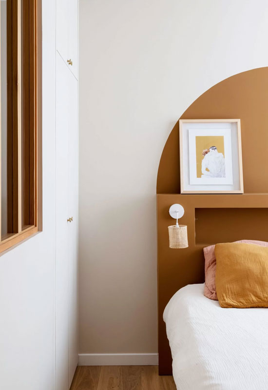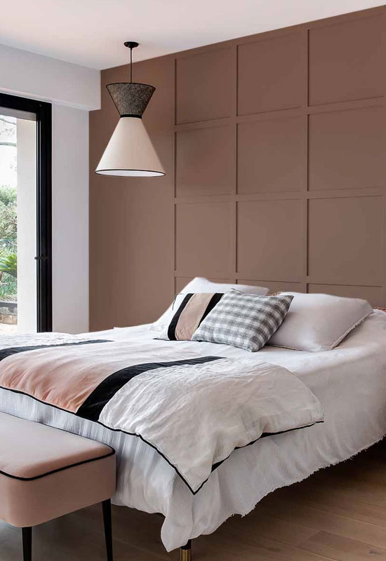 Ainsi, sur un pan de mur ou au niveau de la tête de lit, on marie à loisir ces nuances pour réchauffer nos intérieurs.