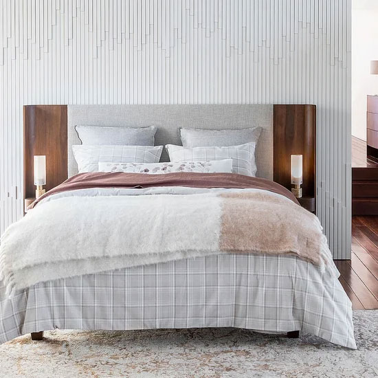 Posez cette tête de lit devant un mur d’une teinte plus foncée, pour créer un contraste visuel attirant.