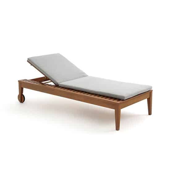 Ce bain de soleil en acacias vernis a tout pour plaire et il a la particularité d’être fixé dans une configuration parfaitement ergonomique.