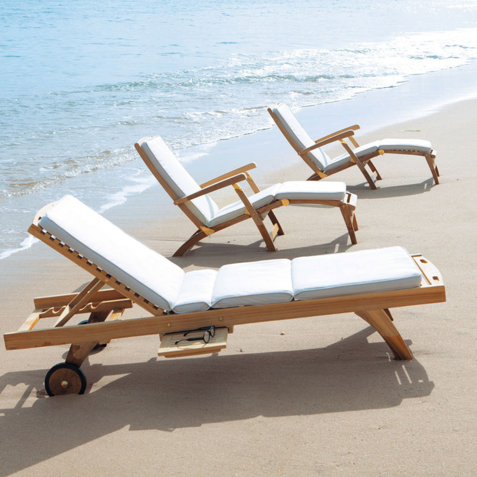 Avec son look authentique et sa forme ergonomique, ce transat en teck mise sur l’esthétique autant que sur le confort.
